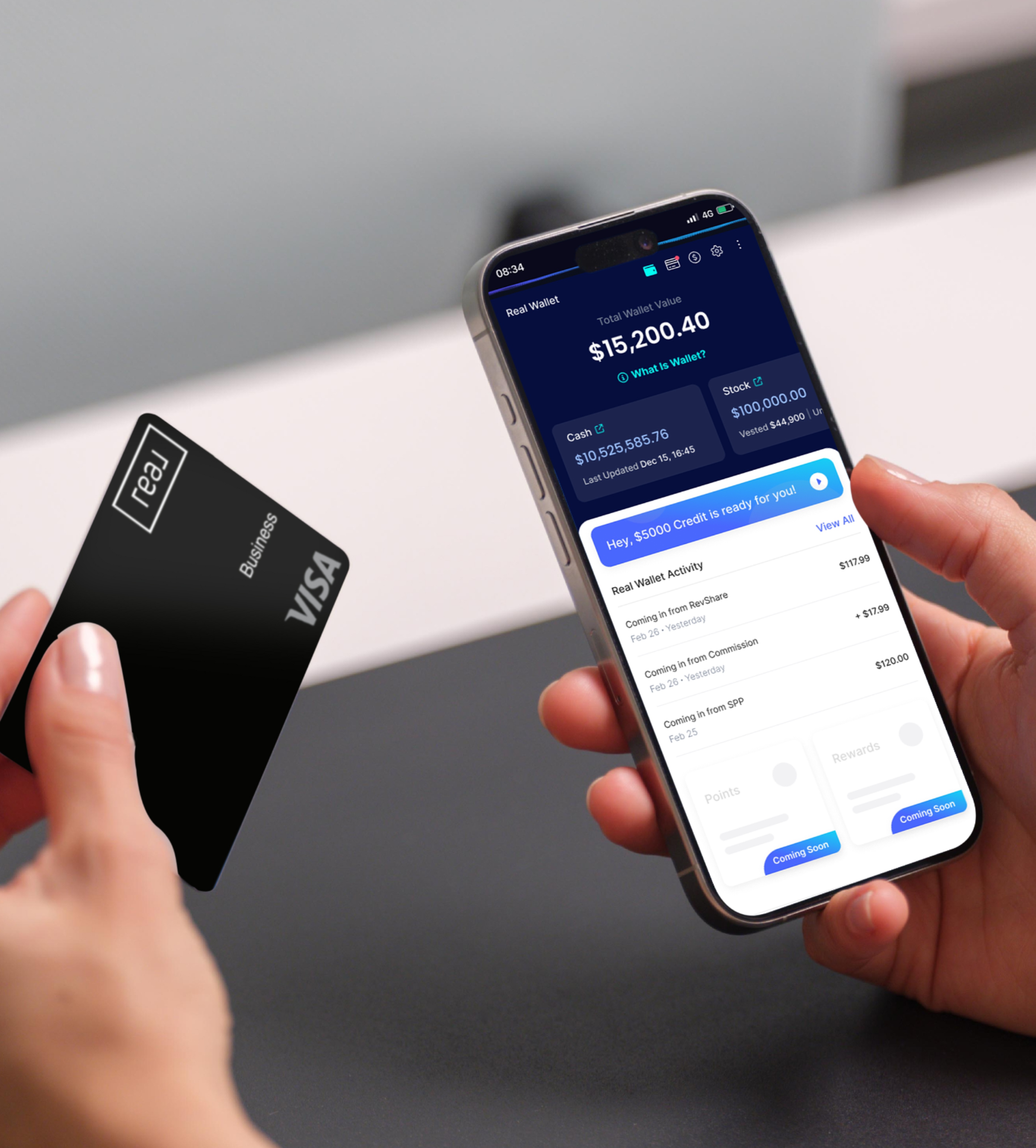 Accumulate Real Wallet Reward points for business purchases and checking account deposit balances.