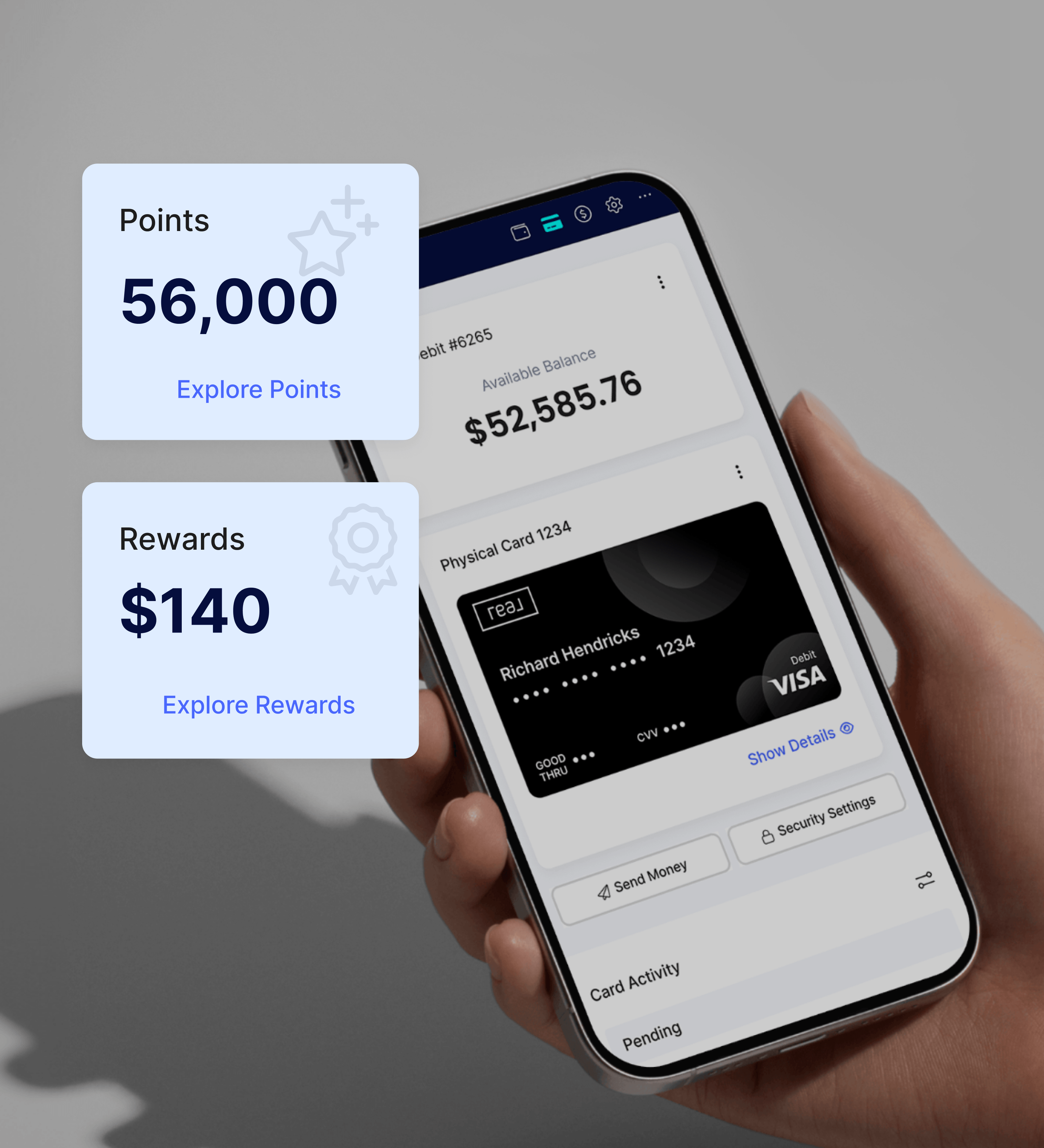 The more you bank, spend, and save through Real Wallet, the more you earn. Each transaction helps you climb to a higher Reward Status—unlocking greater point value and more ways to maximize your earnings. Because at Real, every dollar should work as hard as you do.